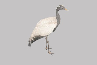最も小型のツル。日本にはごくまれに渡来します。ほかのツル類は湿地帯で繁殖しますが、アネハヅルはそれらと異なり、草原や半砂漠地帯で繁殖します。