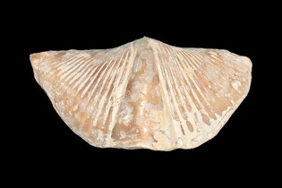 鳥が翼を広げたような殻を持つスピリファーの仲間の化石です。腕足類は、デボン紀に最も分化し、その中頃には約900属にも発展します。